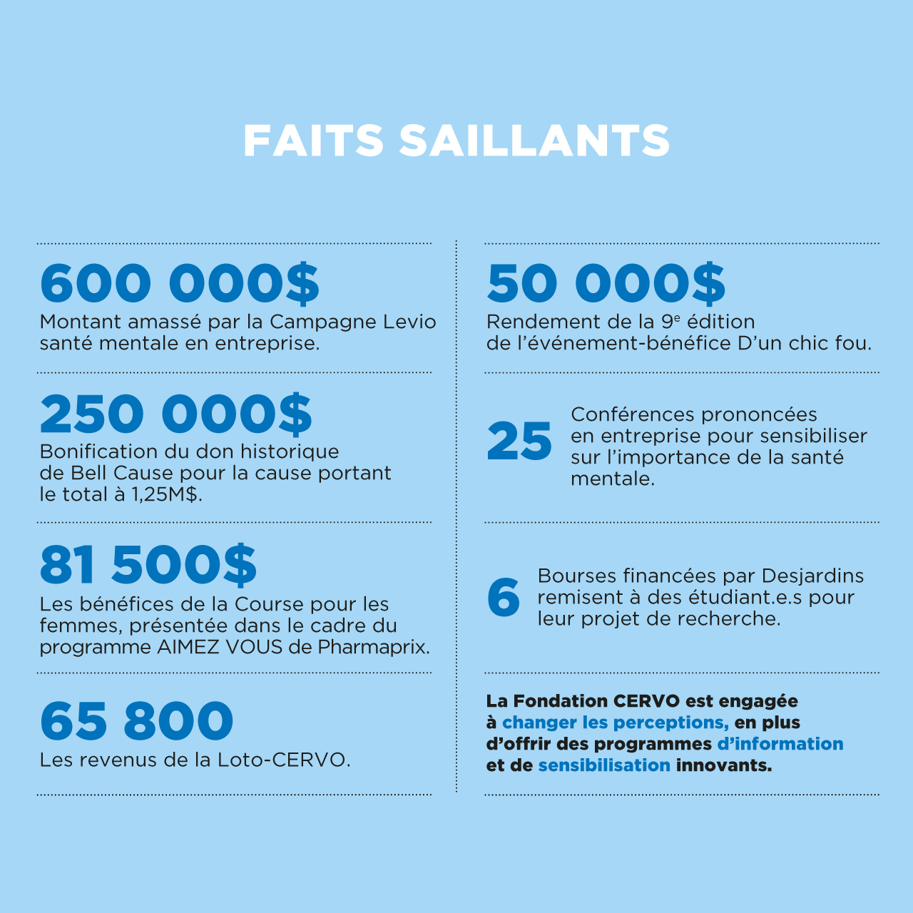 La Fondation CERVO a remis plus de 15 millions de dollars en recherche, en soins et en sensibilisation en santé mentale :